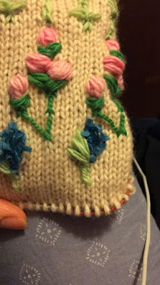Всем привет) спицы мне нужно было брать больше, 4.5 как минимум, точно не 4. Хотя я вяжу не туго. Мне понравился метод вливания цвета. Мне не понравились календулы, получается мало цветка и много чашелистиков, очень плотно чашелистиками покрытом все, может нужно более объемной сам цветок сделать. Ну и лично мое - не люблю много ниток от жаккарда по обратной стороне изделия. Понравились бутоны, люпины - как следствие. Гиацинт тоже понравился, за счёт фактурной пряжи больше, чем за счёт самого цветка. Рядов подклада подучилось 65.